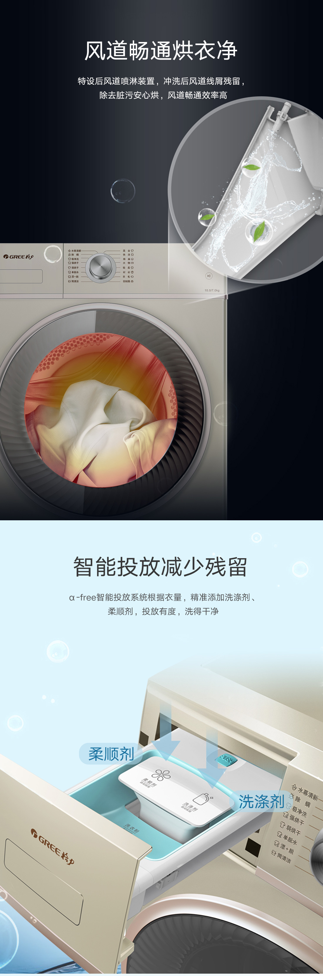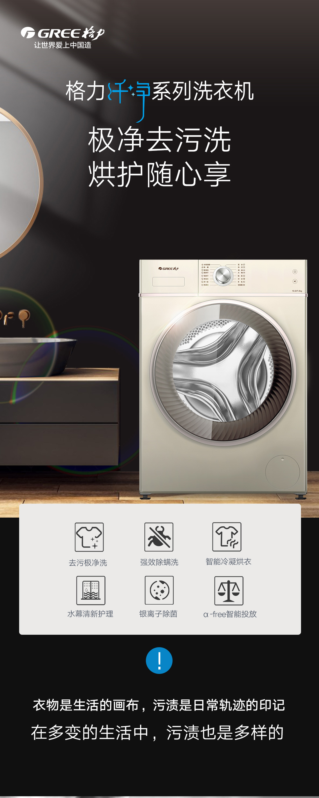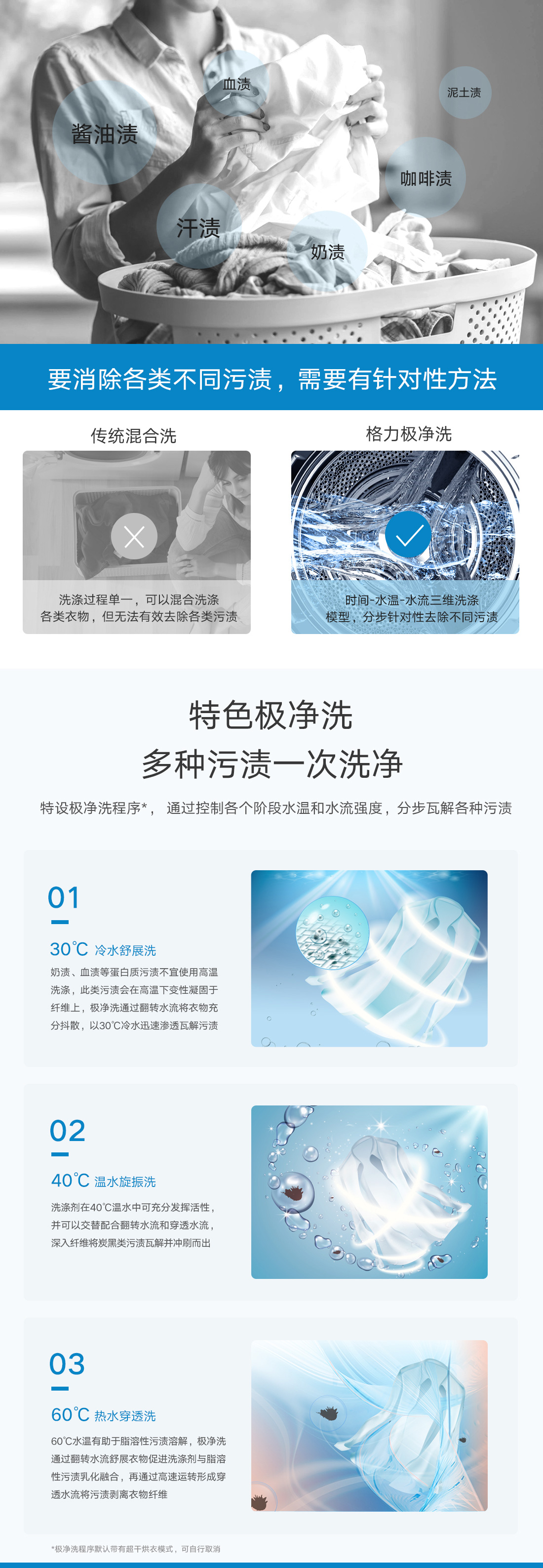 极净去污,一次洗净多类污渍,洗烘一体,即洗即烘即穿.