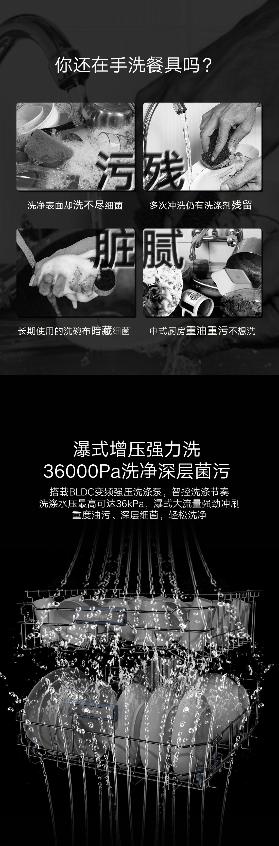 搭载瀑式增压强洗科技,36KPa洗净深层菌污,除菌率达99.99%;洗烘除存一体,存放7天也干爽