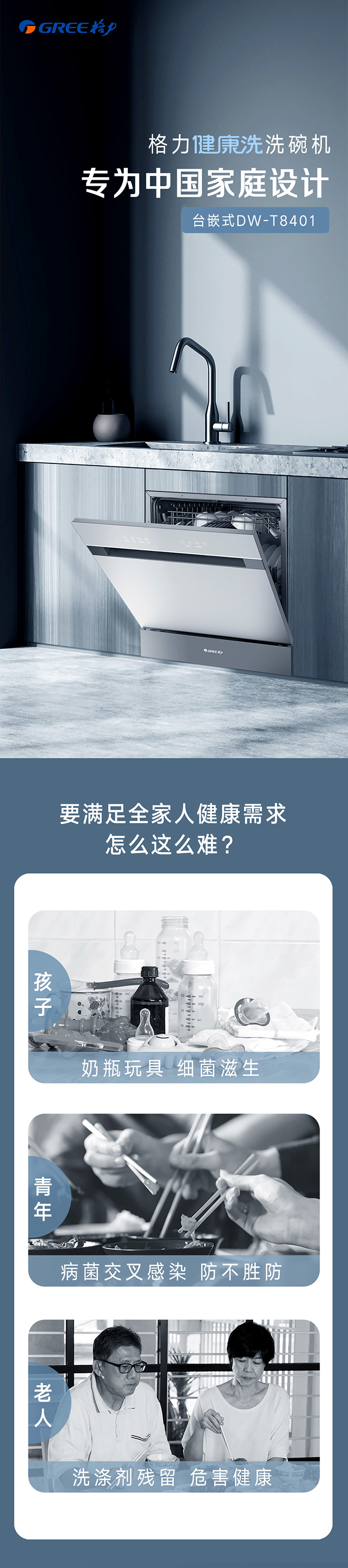 AG贵宾会健康洗洗碗机,专为中国家庭设计;洗除排烘存更全能;热风循环烘干,内腔餐具都干爽