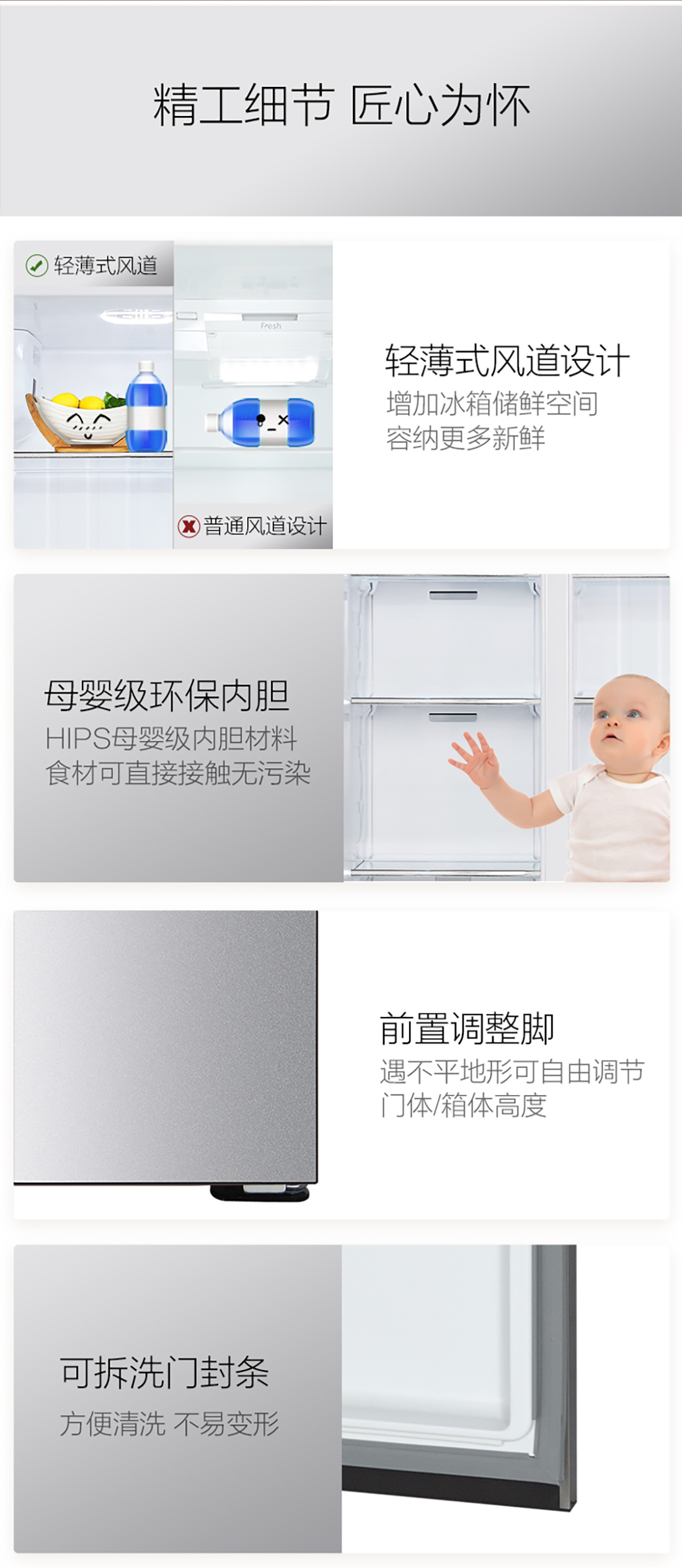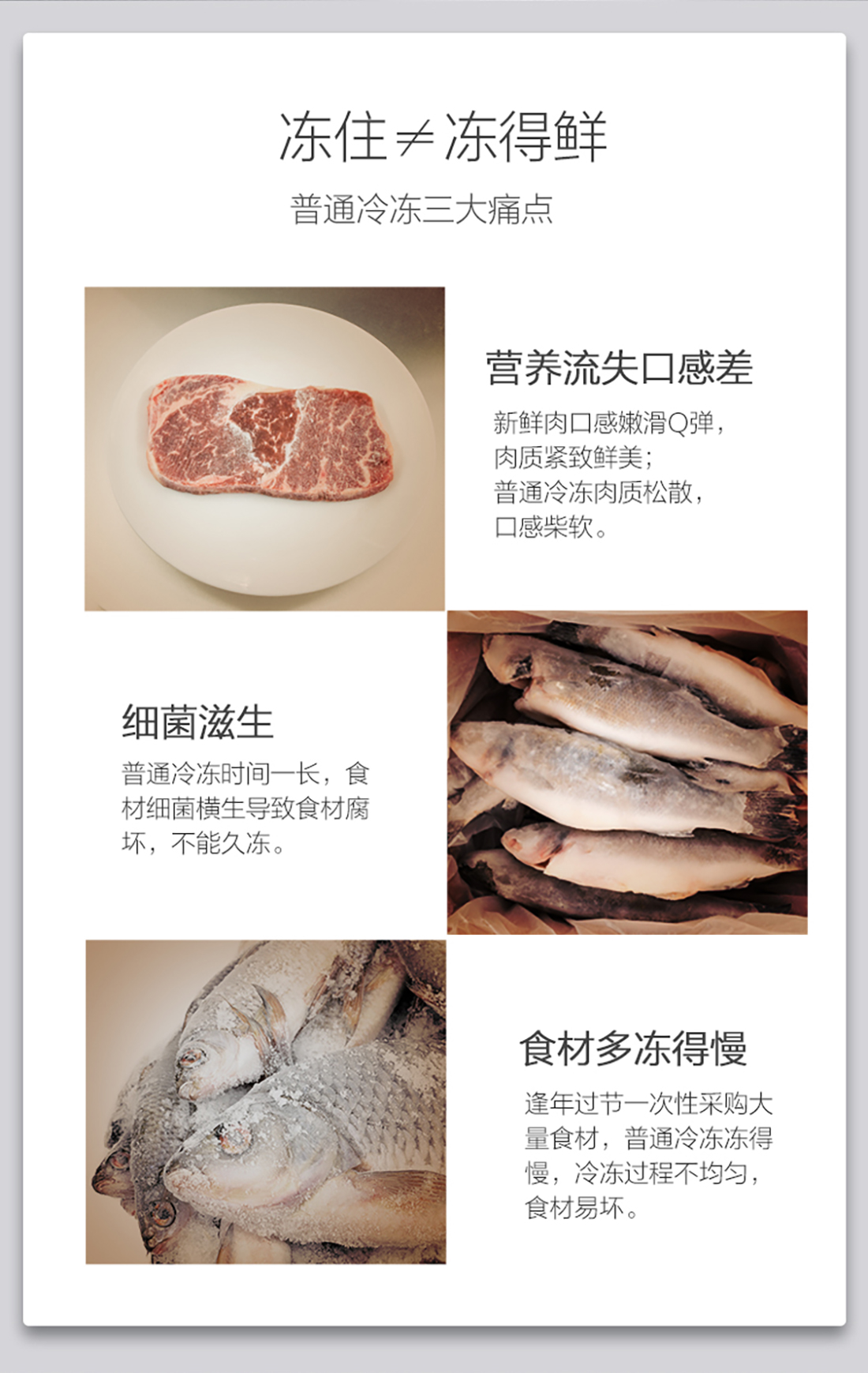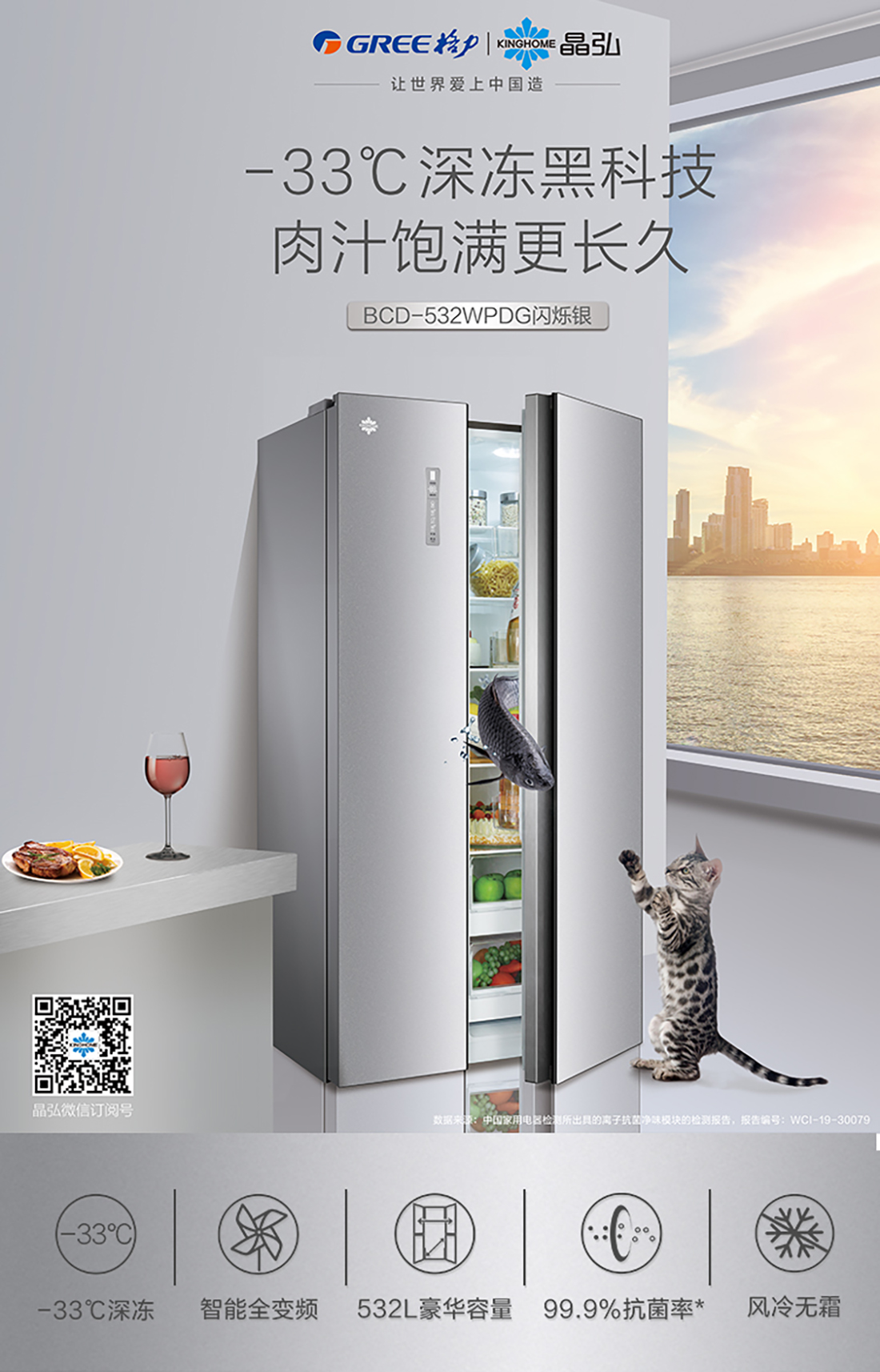 搭载-33℃深冻锁鲜科技,肉汁饱满更长久。采用离子长效抗菌净味,抗菌率高达99.9%。3D沐风,风冷养鲜,无需凿霜。