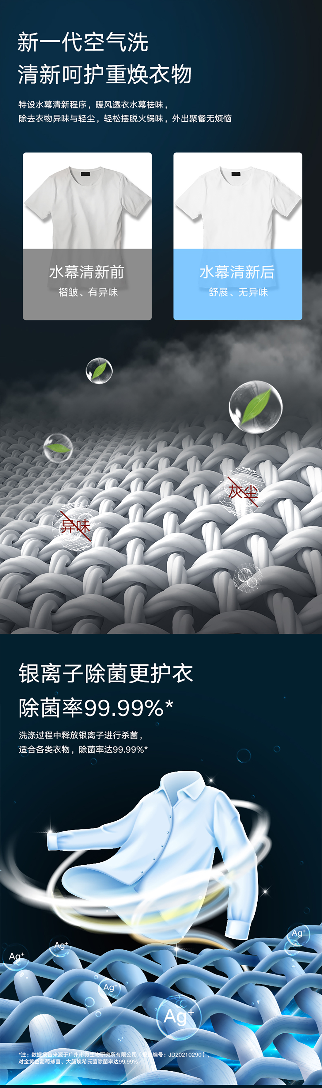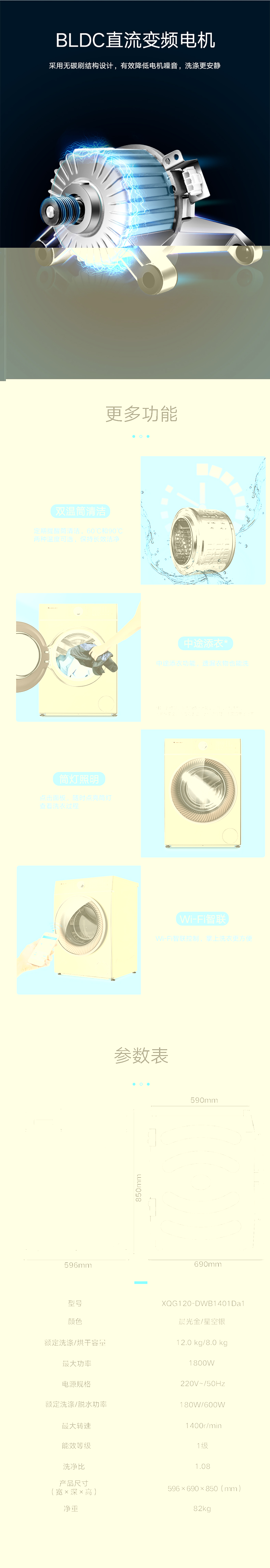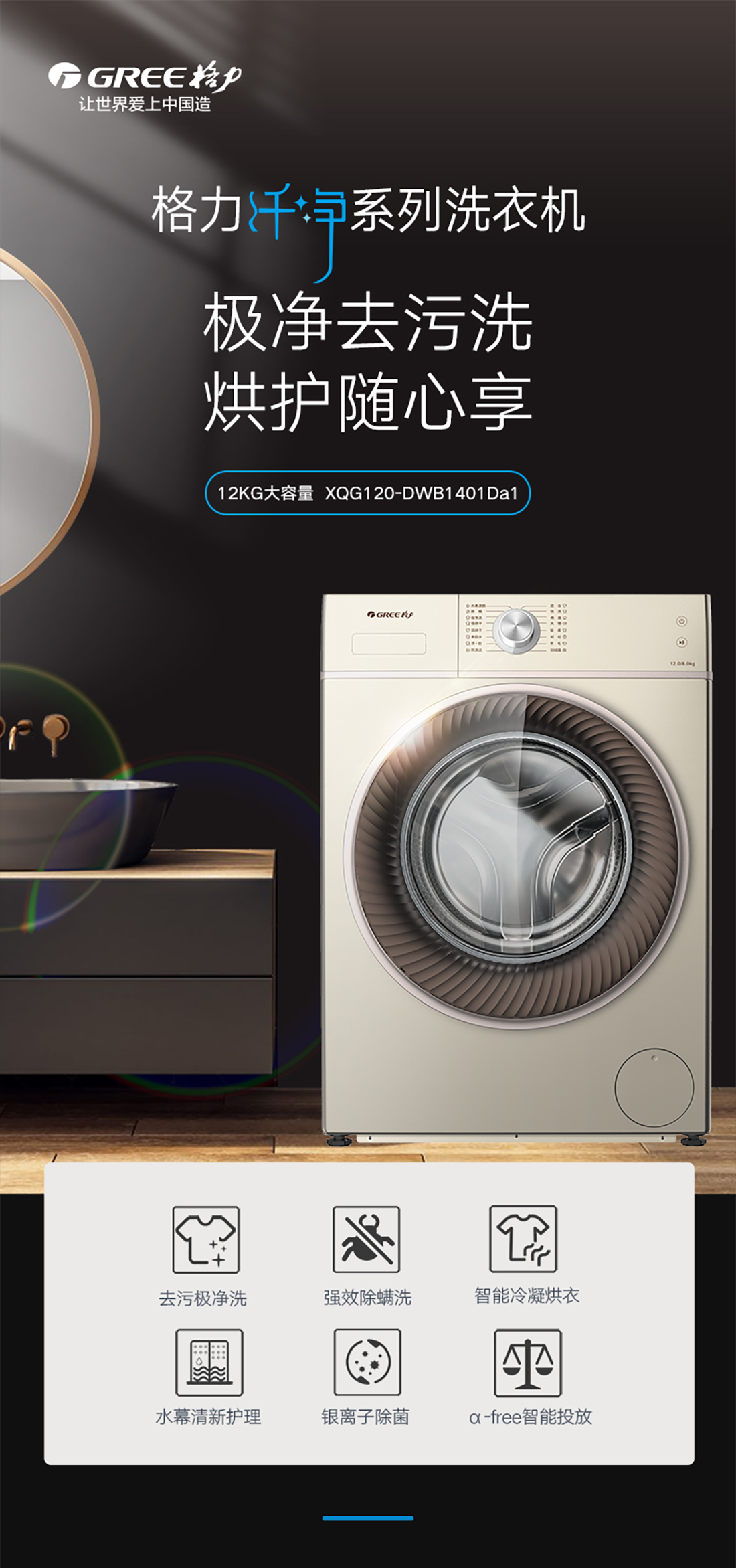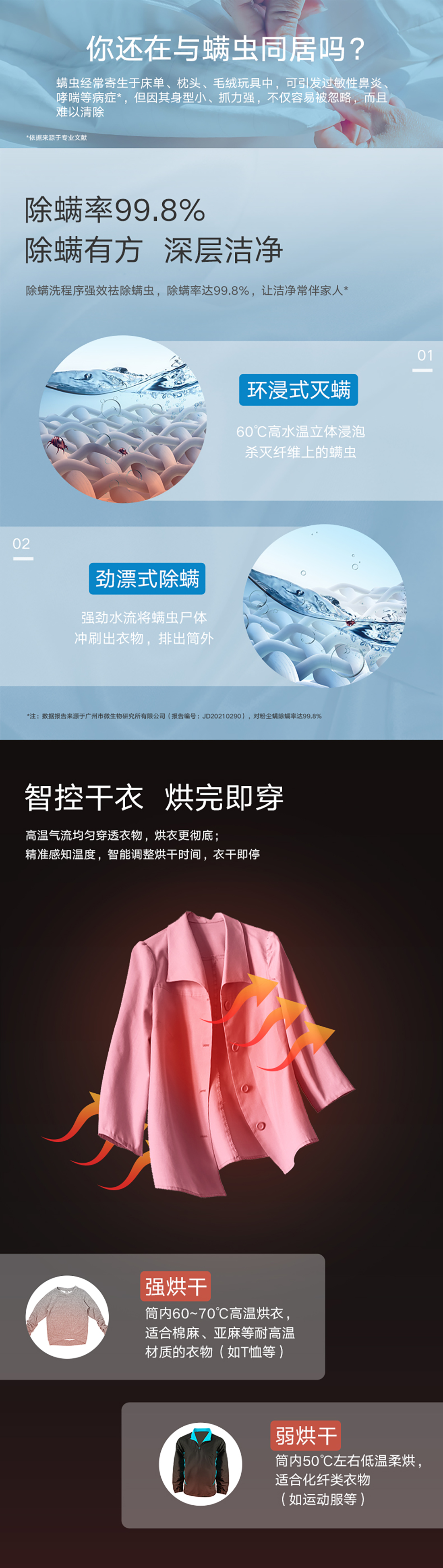 极净去污,一次洗净多类污渍;大容量,全家人衣物无需分类分开洗;洗烘一体,即洗即烘即穿.