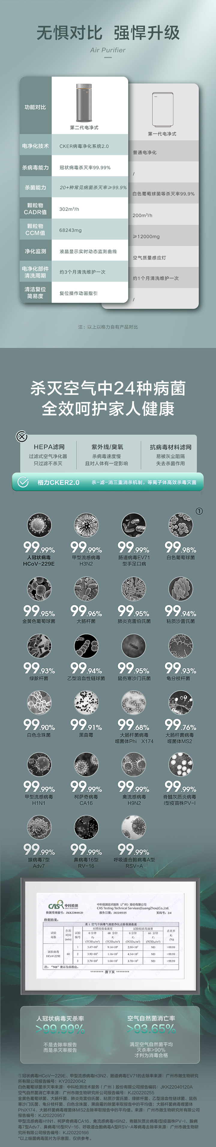 猎手II空气净化器体积减小,但性能依旧强悍,通过CKER病毒净化系统2.0,真正做到病毒杀灭率达99.99%,细菌杀灭率达99.9%
