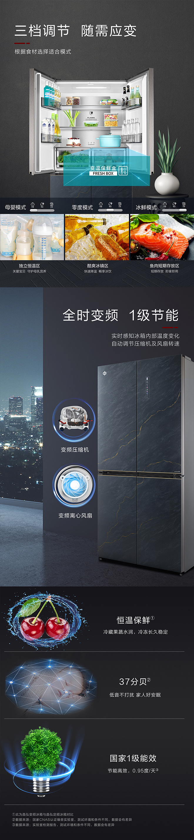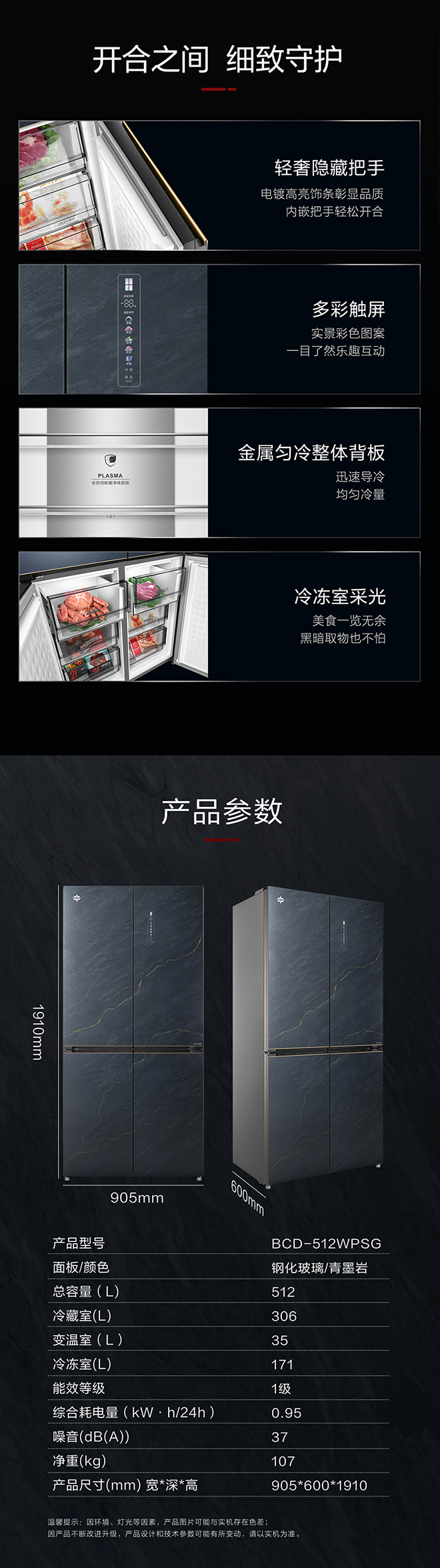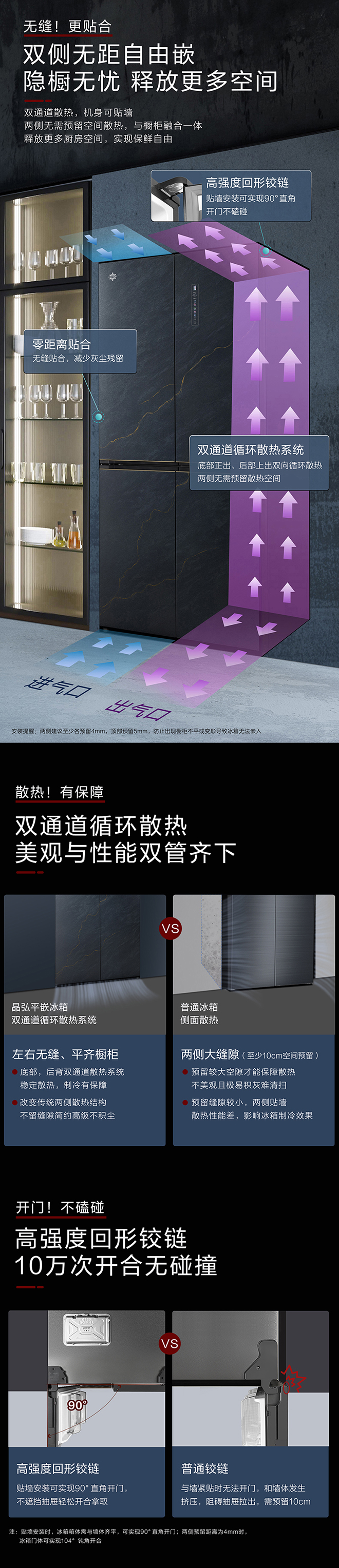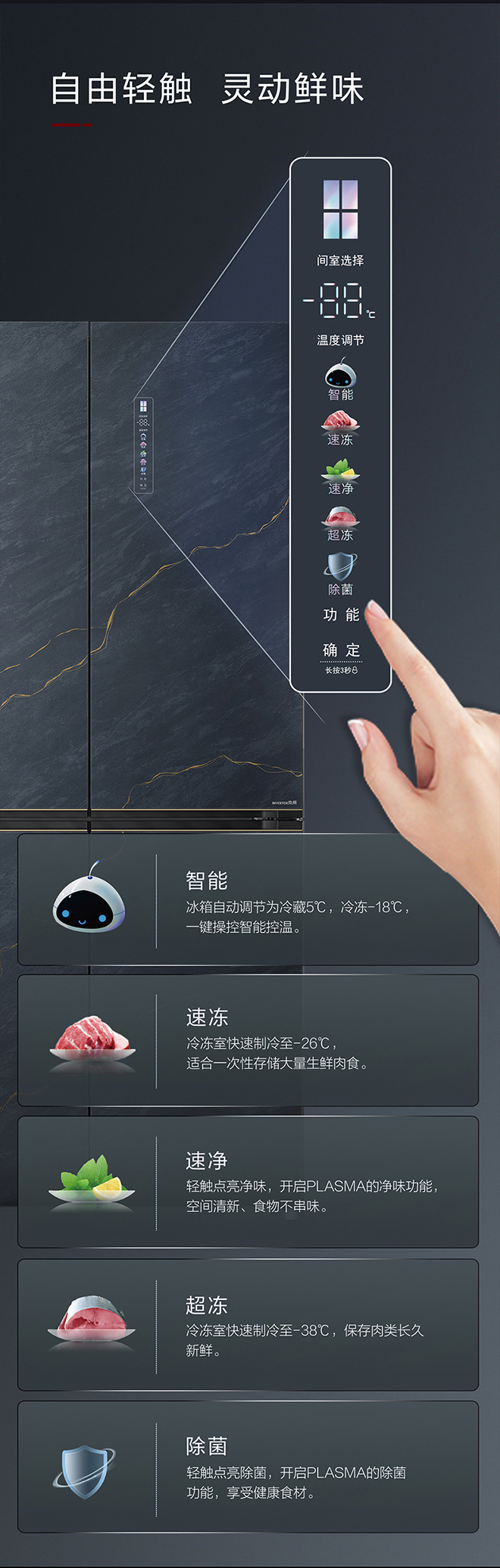 -38℃超冻锁鲜;PLASMA全空间除菌净味;平齐不凸出;双通道循环散热