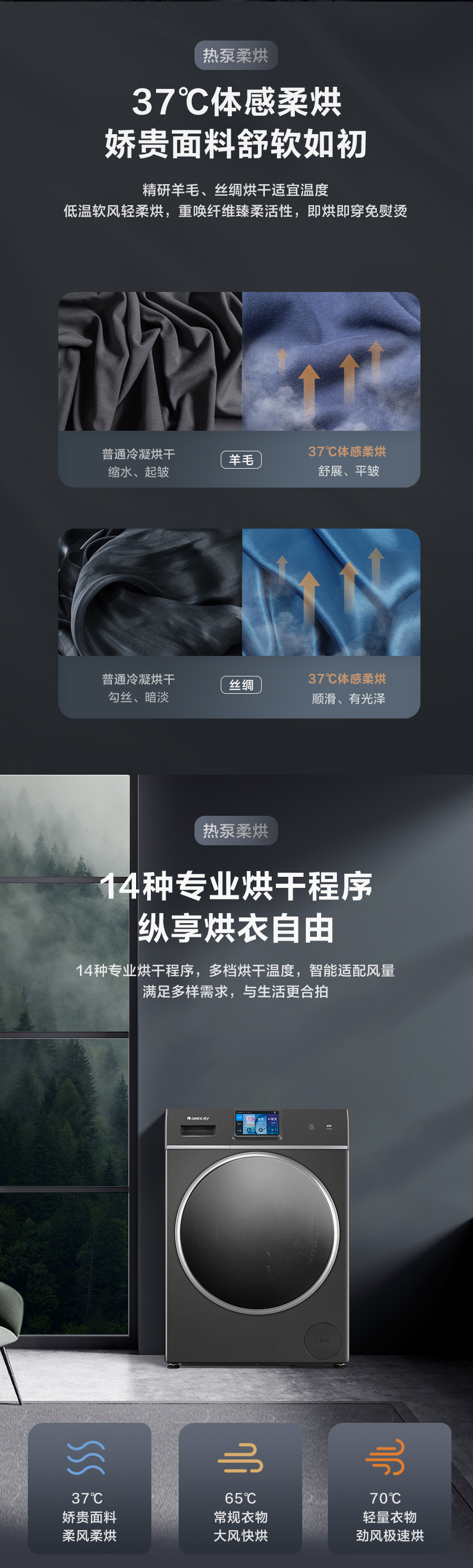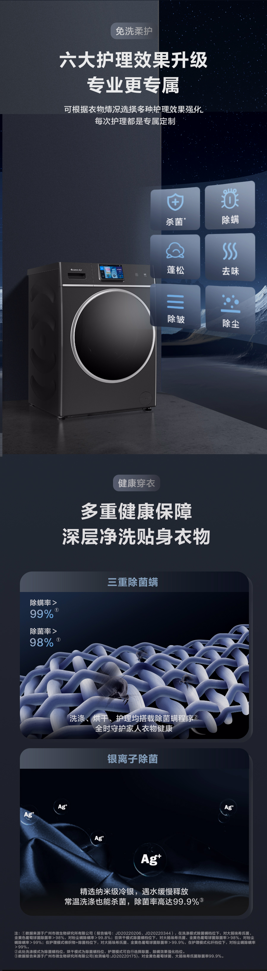 37℃低温柔烘不伤衣;全域超微蒸汽洗;ICleaner全域智清洁