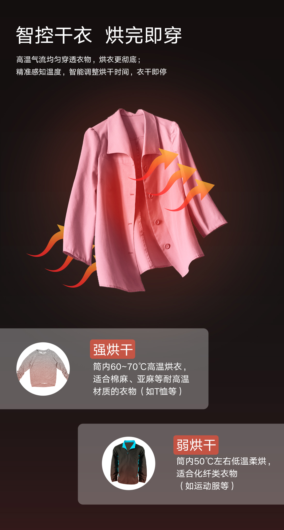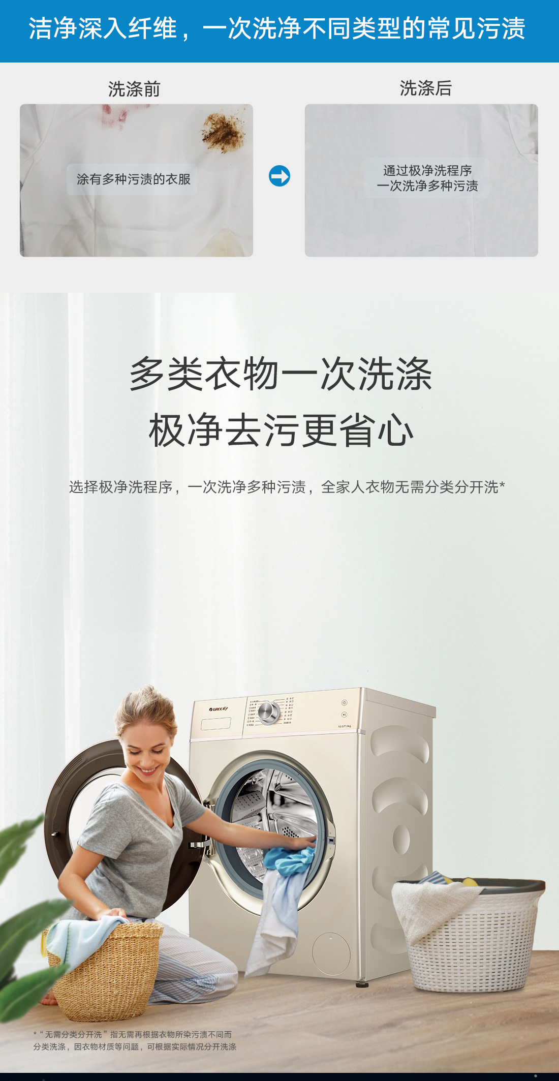 极净去污,一次洗净多类污渍,洗烘一体,即洗即烘即穿.