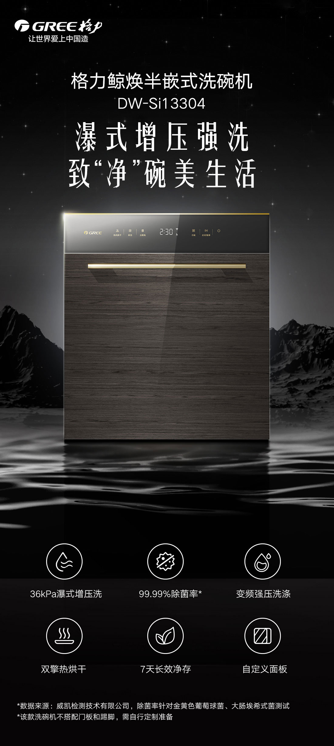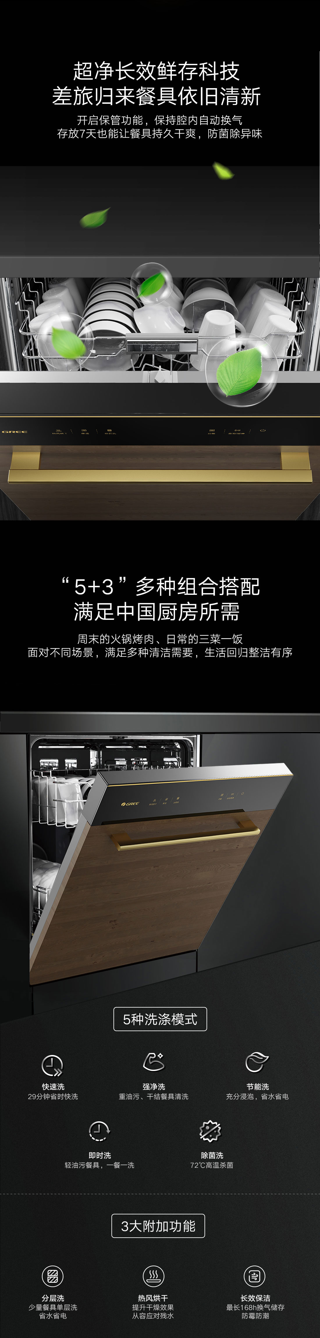 搭载瀑式增压强洗科技,36KPa洗净深层菌污,除菌率达99.99%;洗烘除存一体,存放7天也干爽