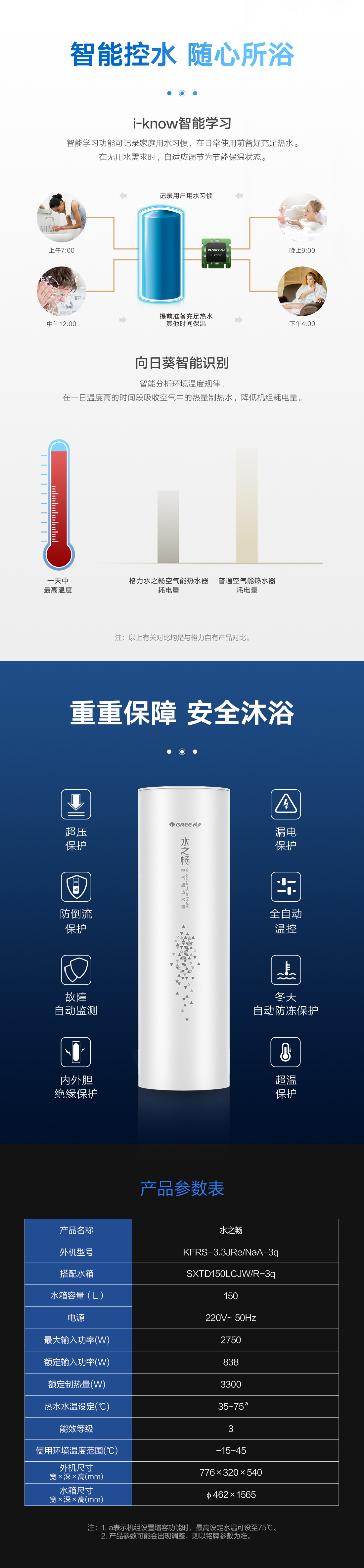 新型环保冷媒,绿色节能更高效,内置增容、向日葵、i-know等个性化功能;给您的沐浴带来多样化体验