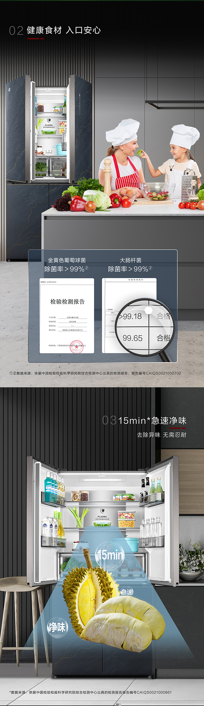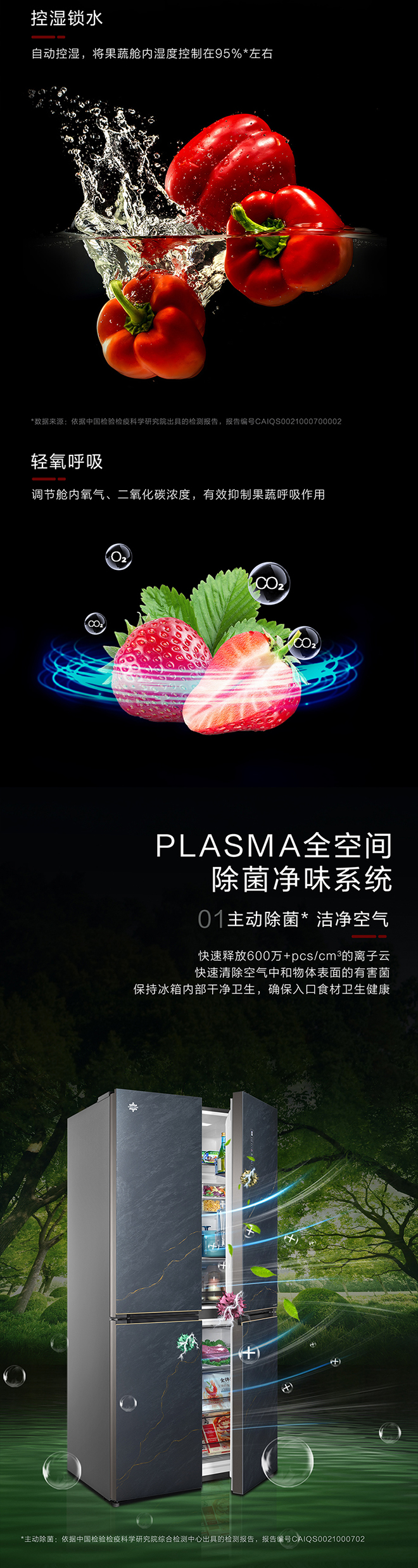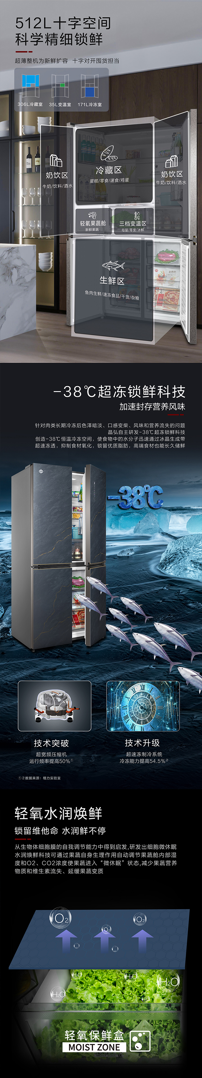 -38℃超冻锁鲜;PLASMA全空间除菌净味;平齐不凸出;双通道循环散热