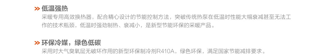 采用直流变频技术,制热量范围8.5~16kW,稳定运行环境温度范围-20℃~28℃、出水温度范围25~55℃,具有低温强热、节能高效、稳定可靠等特点,适用于集中供暖覆盖不足的农村及城郊地区以及城市独立供暖的公寓、复式楼、别墅、单元写字楼、餐厅、商店、娱乐场所等空间.